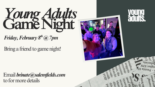 Bring a friend to game night Friday, February 20 @ 7pm! For details email brinate@salemfields.com.